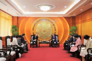 Tại buổi làm việc, hai bên trao đổi toàn diện về bối cảnh phát triển của Việt Nam sau Đại hội đại biểu toàn quốc lần thứ XIV của Đảng, cũng như những yêu cầu mới đối với công tác nghiên cứu khoa học xã hội và tư vấn chính sách trong giai đoạn tới. Hai bên thống nhất nhận định, trong bối cảnh tình hình khu vực và thế giới diễn biến nhanh chóng, phức tạp, việc tăng cường hợp tác nghiên cứu, chia sẻ thông tin, kinh nghiệm quốc tế có ý nghĩa quan trọng, góp phần nâng cao chất lượng hoạch định và thực thi chính sách phát triển.