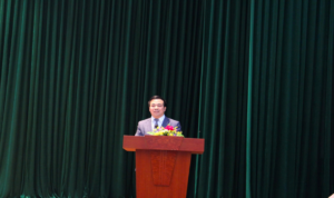 PGS.TS. Phạm Hồng Thái, nguyên Quyền Viện trưởng Viện Nghiên cứu Đông Bắc Á phát biểu tại buổi gặp mặt cán bộ hưu trí