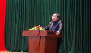 TS. Nguyễn Xuân Cường, Bí thư Đảng ủy, Viện trưởng Viện Nghiên cứu Châu Á – Thái Bình Dương phát biểu tại buổi gặp mặt cán bộ hưu trí